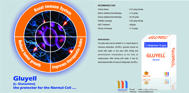 - Glutamine significantly reduces the risk and severity of Oral Mucositis during radiotherapy or chemotherapy.